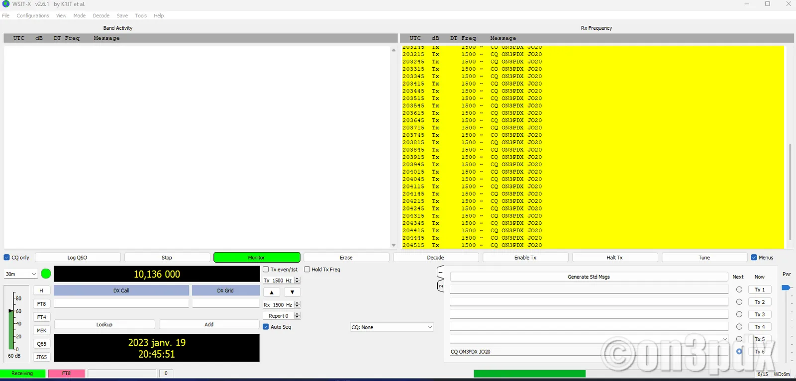 • Vérifiez que l’horloge de votre PC est bien synchronisée (indispensable pour le FT8).